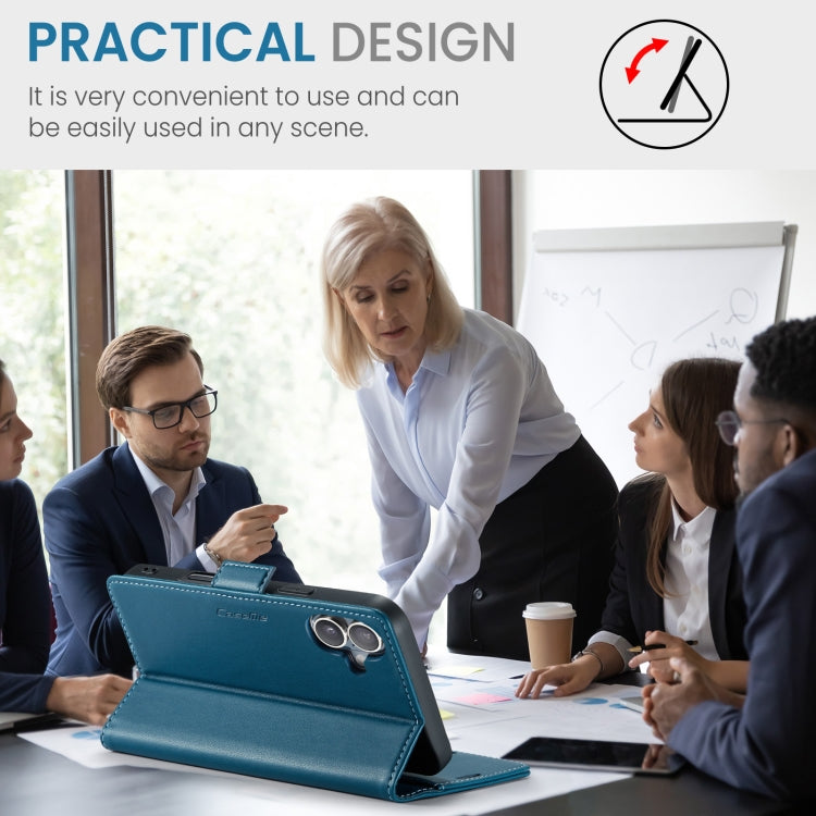 For iPhone 16 Plus CaseMe 023 Butterfly Buckle Litchi Texture RFID Anti-theft Leather Phone Case(Blue)