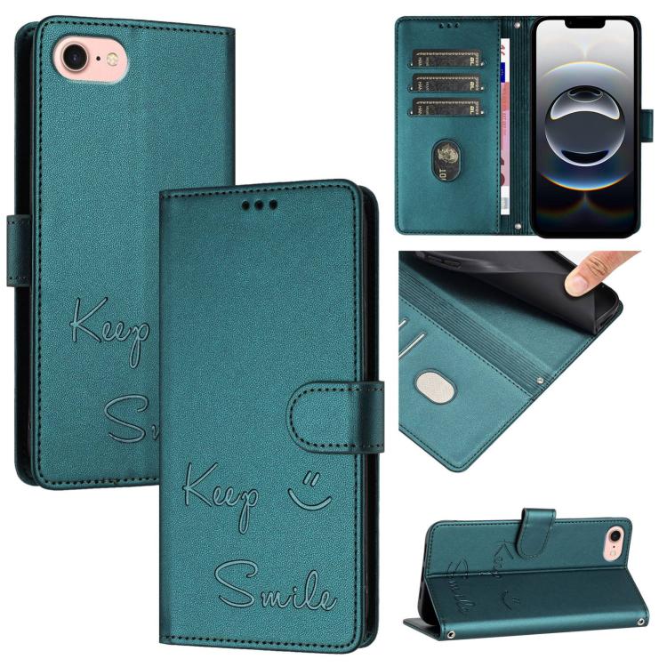 For iPhone SE 2024 Smile Embossing RFID Leather Phone Case(Peacock Green)