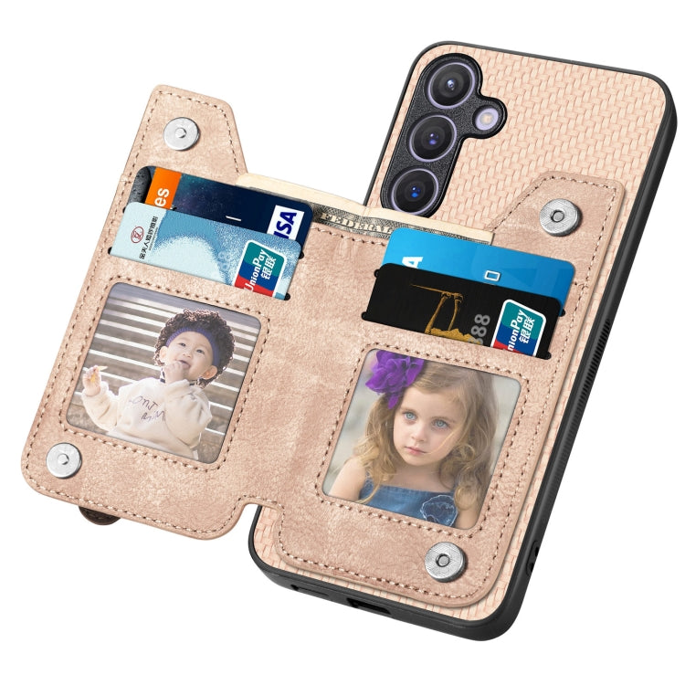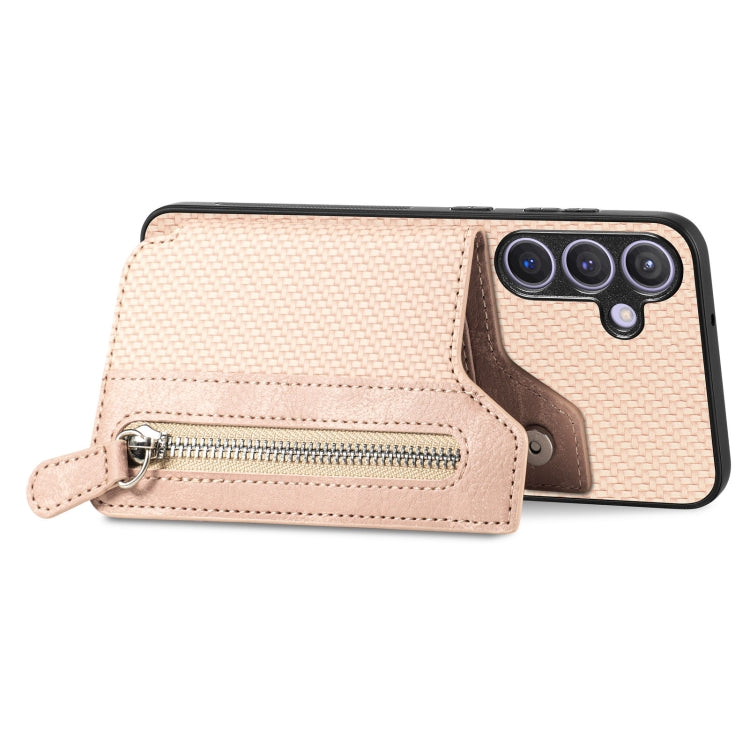 For Samsung Galaxy S24+ 5G Carbon Fiber Horizontal Flip Zipper Wallet Phone Case(Khaki)