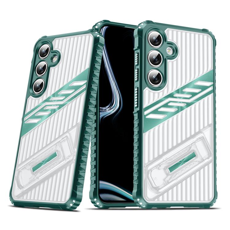 For Samsung Galaxy S24+ / S25+ 5G Plating Holder PC Hybrid TPU Phone Case(Dark Green)