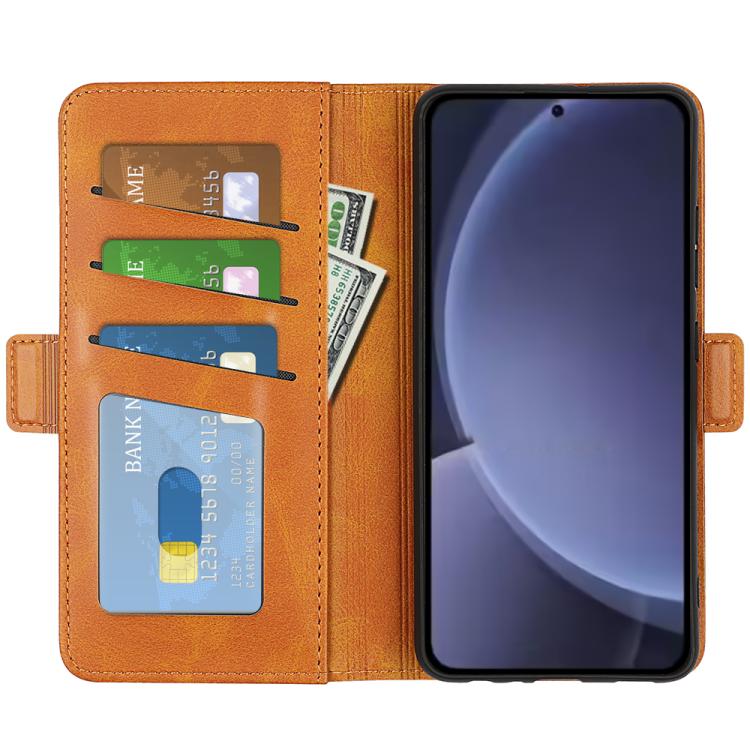 For Samsung Galaxy S25+ 5G Dual-side Magnetic Buckle Horizontal Flip Leather Phone Case(Yellow)