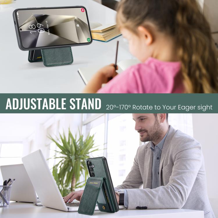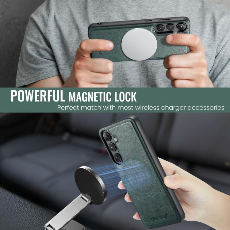 For Samsung Galaxy S25+ 5G Fierre Shann Cowhide Vertical Flip Magnetic Card Holder Phone Case(Green)