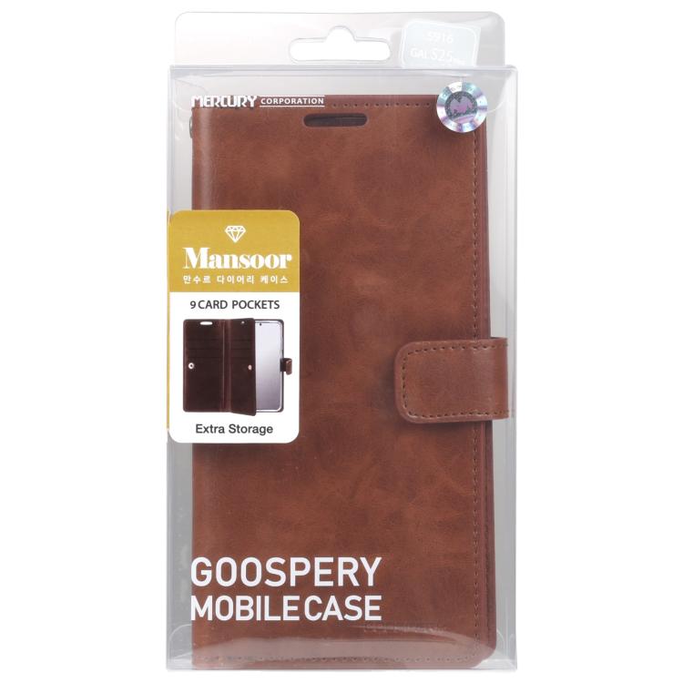 For Samsung Galaxy S25 5G GOOSPERY MANSOOR DIARY 9 Card Slots Leather Phone Case(Brown)
