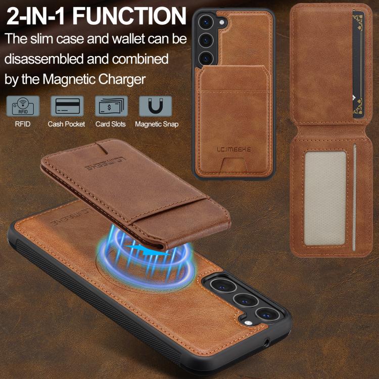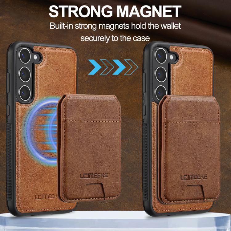 For Samsung Galaxy S25+ 5G LC.IMEEKE L3 Series Detachable RFID Card Bag Magsafe Phone Case(Brown)