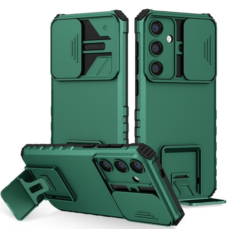For Samsung Galaxy S25 5G Stereoscopic Holder Sliding Camshield Phone Case(Green)