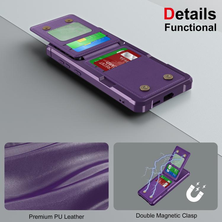 For Samsung Galaxy S25+ 5G Vertical Flip Card Bag Holder Leather Phone Case(Purple)