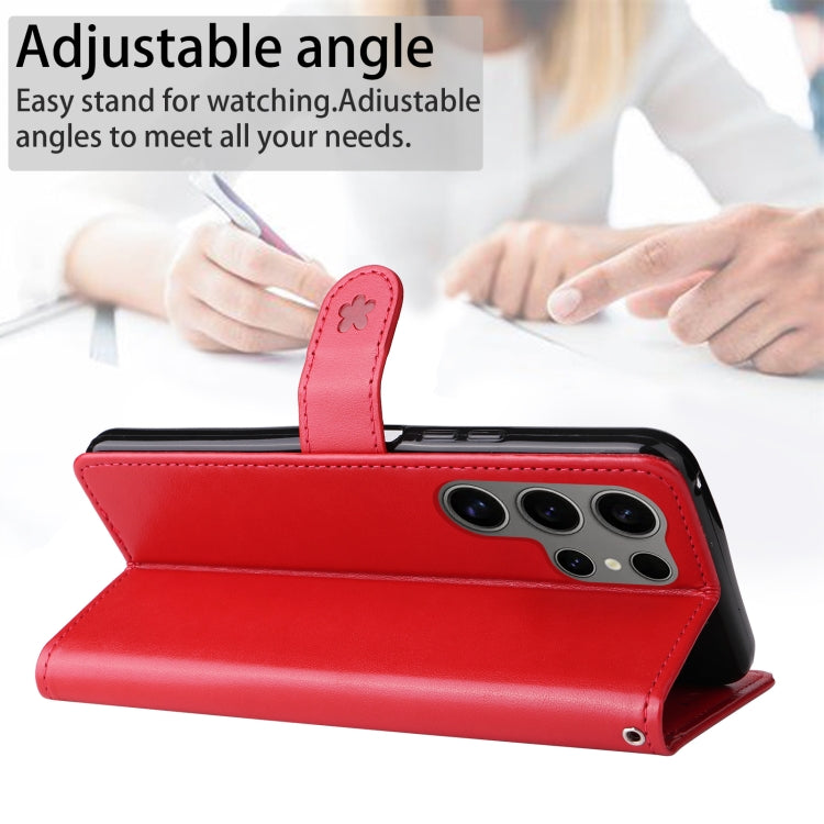 For Samsung Galaxy S25 Ultra 5G Cat and Bee Embossed Flip Leather Phone Case(Red)