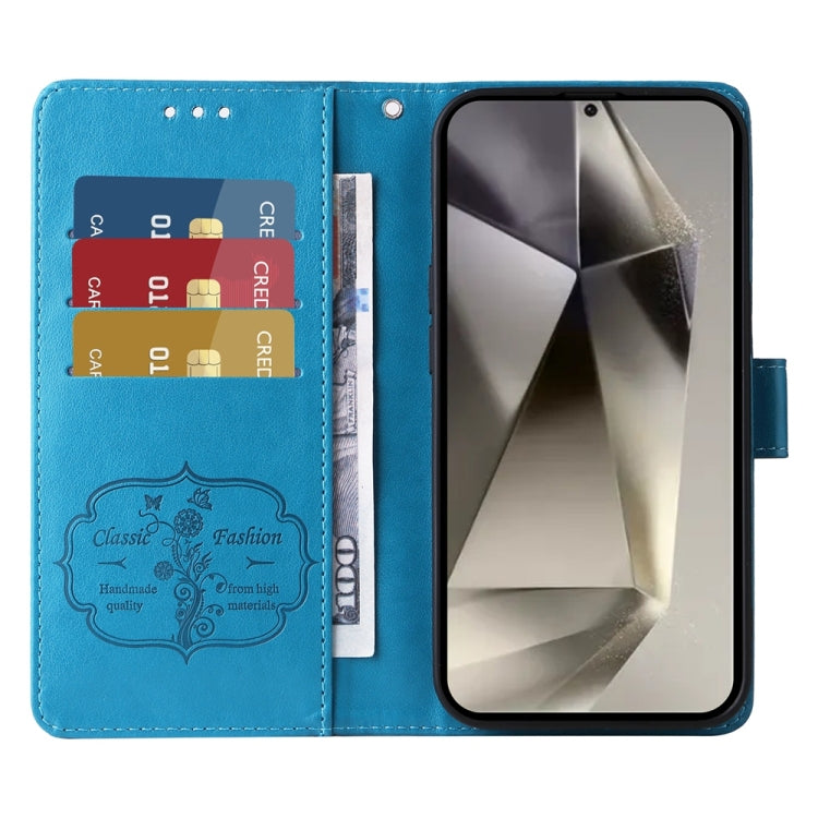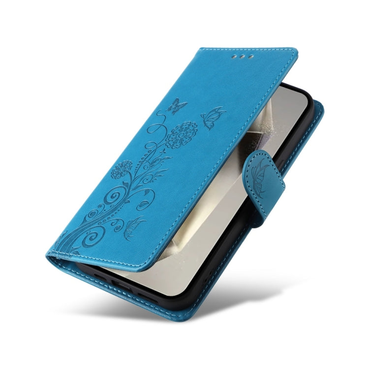 For Samsung Galaxy S25 Ultra 5G Embossed Butterfly Flowers Leather Phone Case(Blue)