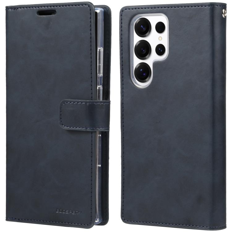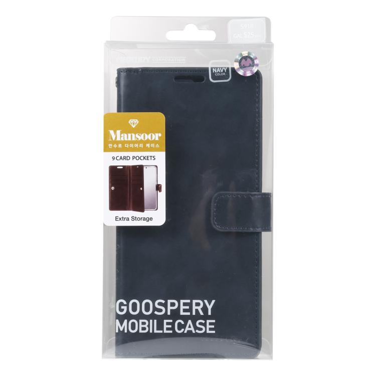 For Samsung Galaxy S25 Ultra 5G GOOSPERY MANSOOR DIARY 9 Card Slots Leather Phone Case(Dark Blue)