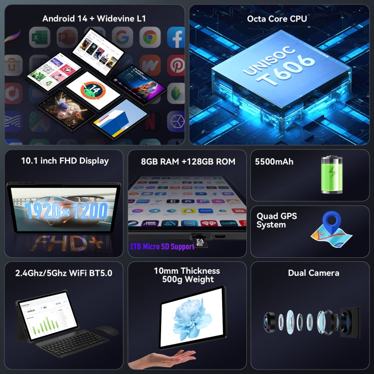 HEADWOLF Wpad5 WIFI Tablet PC, 4GB+128GB, 10.1 inch Android 14 Unisoc Tiger T606 Octa Core, Global Version with Google Play(Dark Grey)