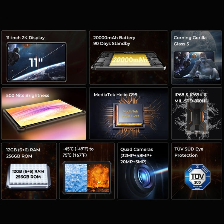 [HK Warehouse] OUKITEL RT8 4G Network IP68/IP69K Rugged Tablet, 6GB+256GB, 11 inch Android 13 MediaTek Helio G99 Quad Core Support Dual SIM, EU Plug(Orange)