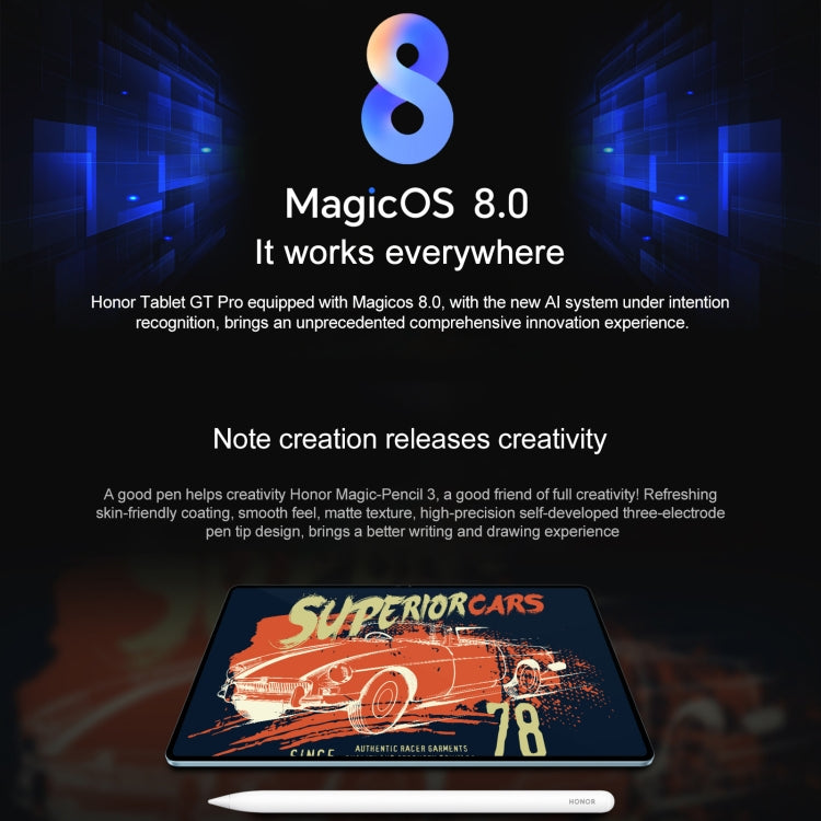 Honor Pad GT Pro WiFi Tablet PC, 12.3 inch 8GB+256GB MagicOS 8.0.1 Qualcomm Snapdragon 8s Gen 3 Octa Core (Black)