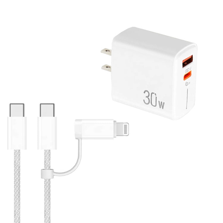 PD31 30W USB-C / Type-C + USB-A Charger with Type-C+8 Pin 2-in-1 Data Cable, US Plug(White)
