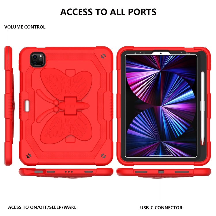 Pure Color PC + Silicone Anti-drop Tablet Tablet Case with Butterfly Holder & Pen Slot For iPad Pro 11 2018 & 2020 & 2021 & Air 2020 10.9(Red)