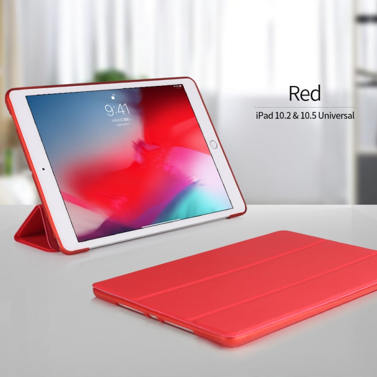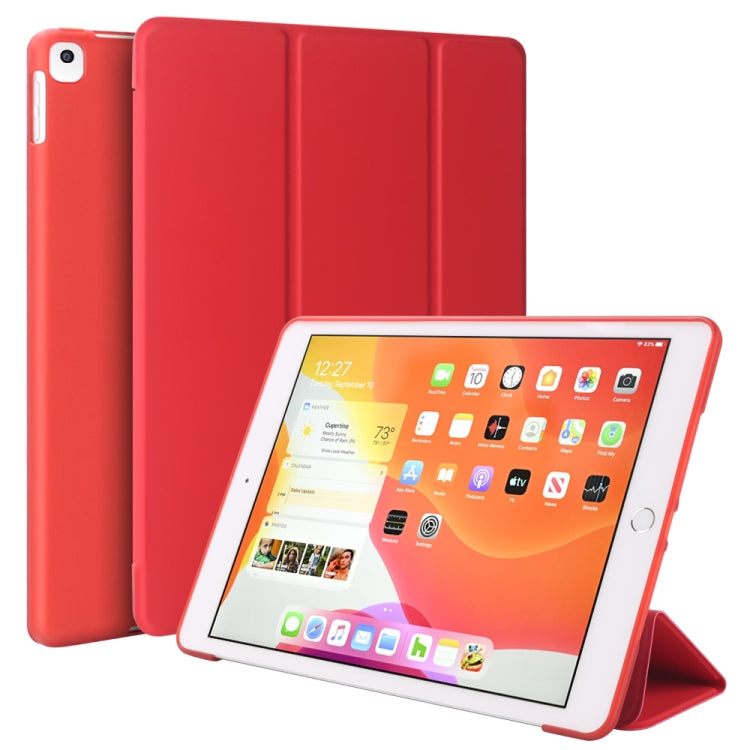 Three-folding Surface PU Leather TPU Matte Soft Bottom Case with Holder & Sleep / Wake-up Function For iPad 10.2 2021 / 2020 / 2019 / iPad Pro 10.5 inch(Red)