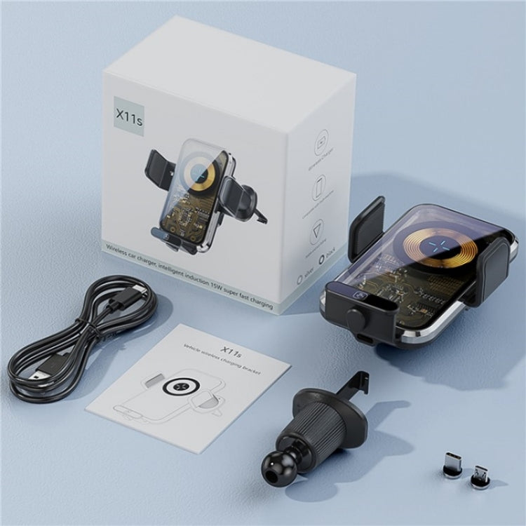 X11s 66W High Power Transparent Car Wireless Charger Phone Bracket(Silver)