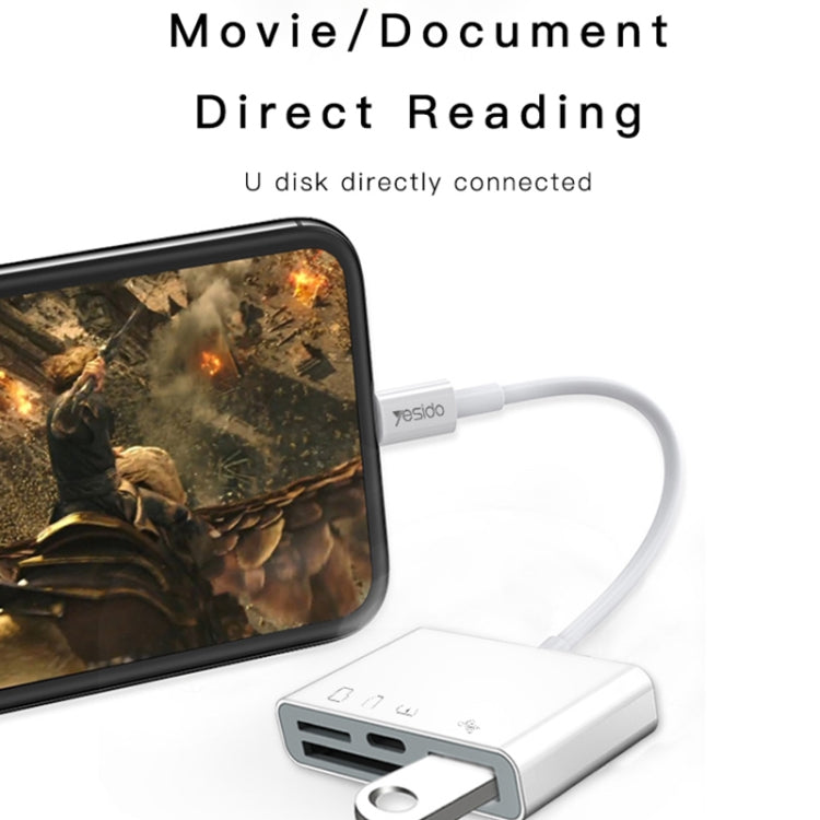 Yesido GS12 8 Pin to TF Card / SD Card / USB / 8 Pin 4 in 1 OTG Converter(White)