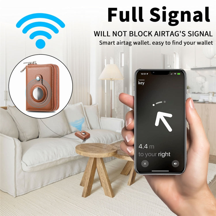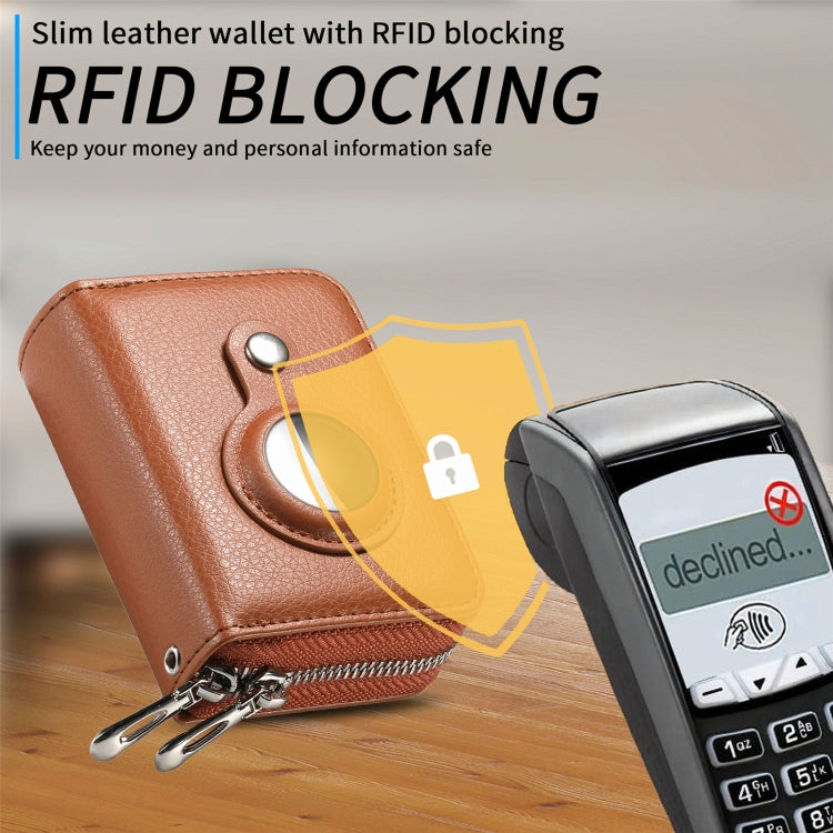 For AirTag 2nd Gen / AirTag 1st Gen Zipper Wallet Protective Cover(Brown)
