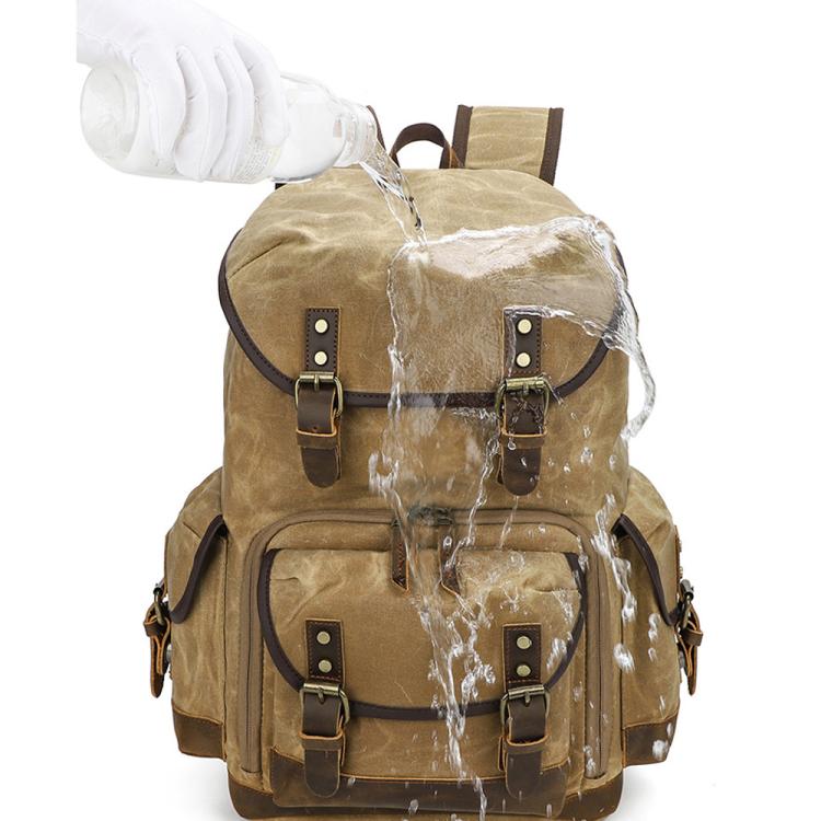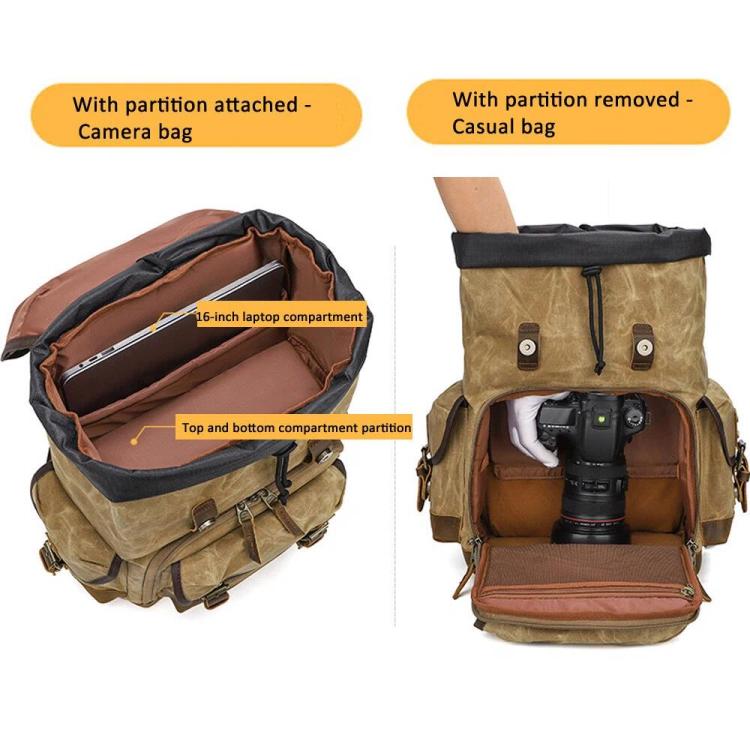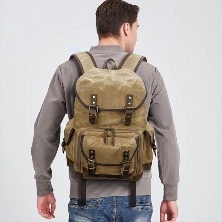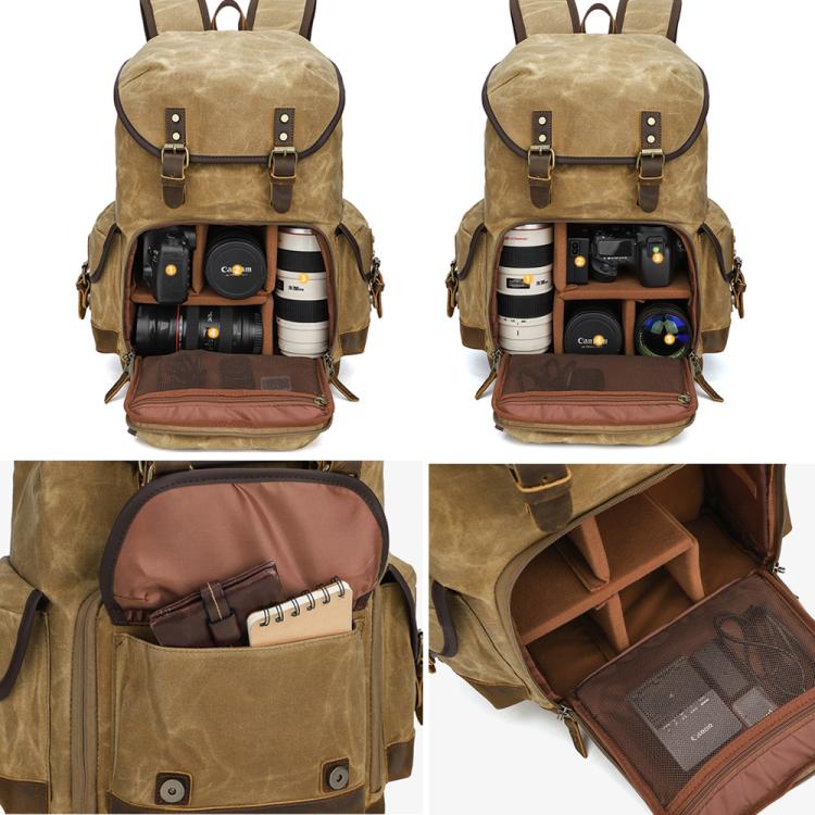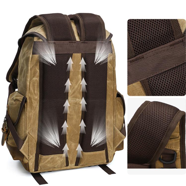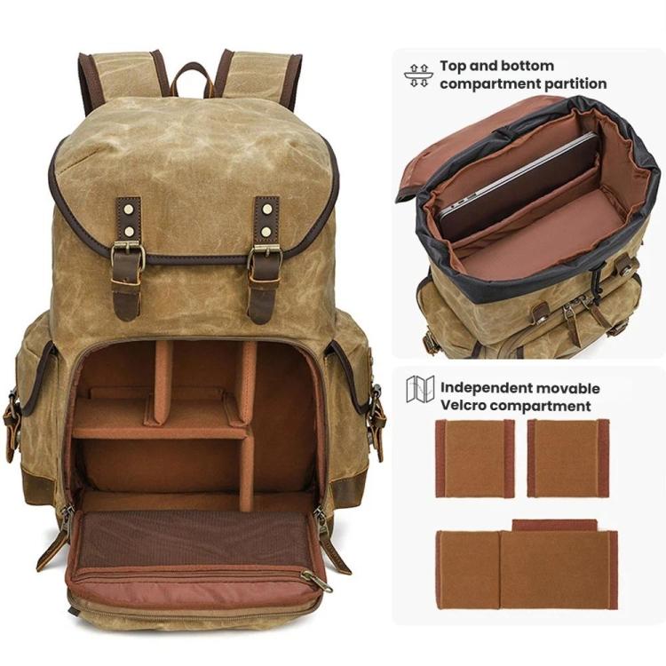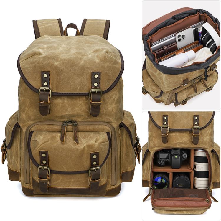 Waxed Canvas Photography Backpack Retro Double-Shoulder Bag For Mirrorless Camera And Laptop(Earthy Yellow)