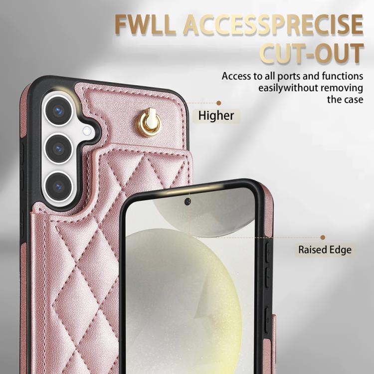 For Samsung Galaxy A16 4G / 5G Rhombic Dual Buckle Card Slots Phone Case with Lanyard(Rose Gold)