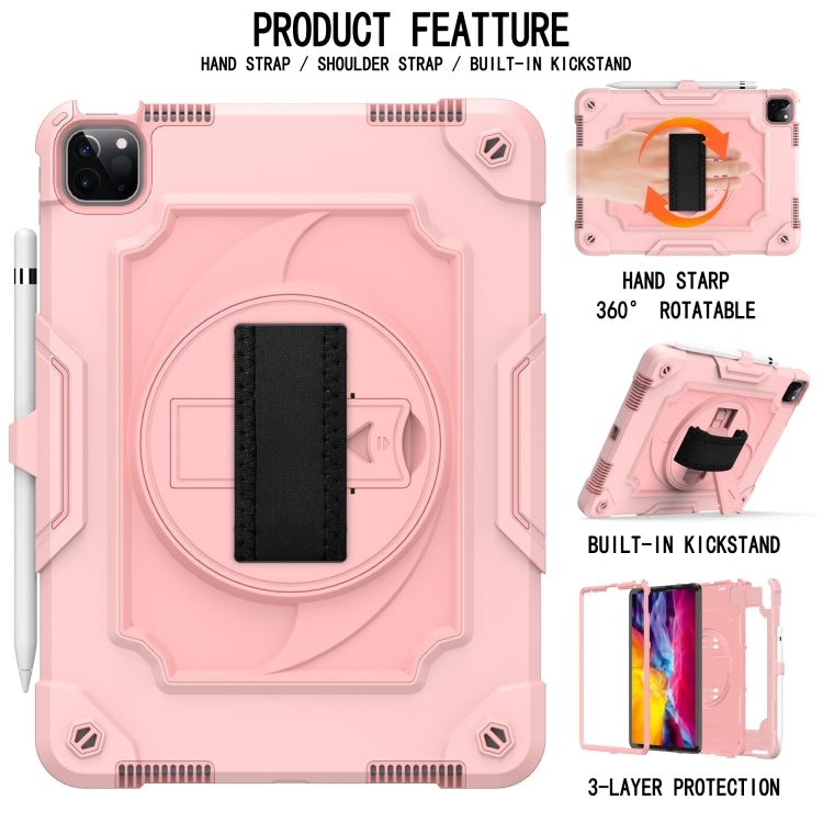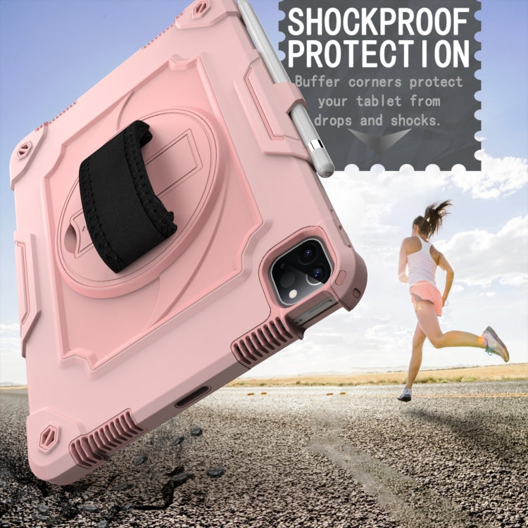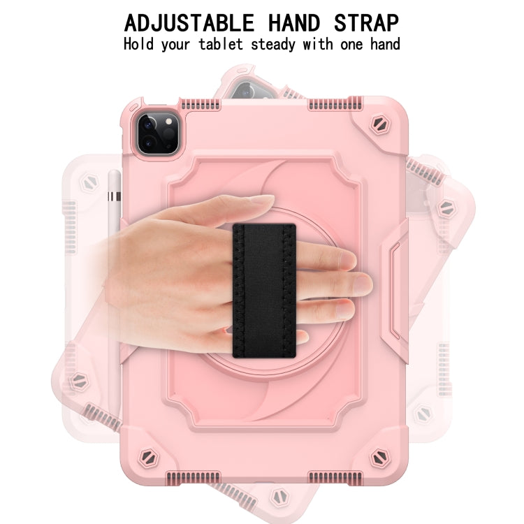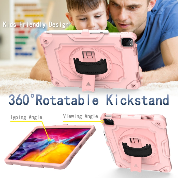 360 Degree Rotation Turntable Contrast Color Robot Shockproof Silicone + PC Protective Case with Holder For iPad Air 2022 / 2020 10.9 / Pro 11 (2020)(Rose Gold)