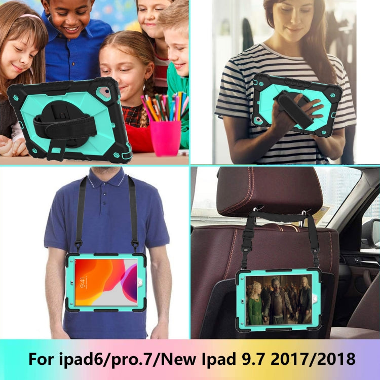 Contrast Color Robot Shockproof Silicon + PC Protective Case with Holder & Shoulder Strap For iPad 9.7 (2018) & (2017) / Air 2 / Air(Black+Mint)