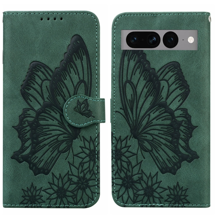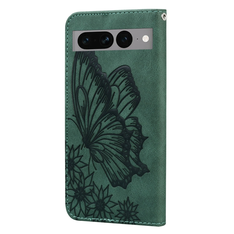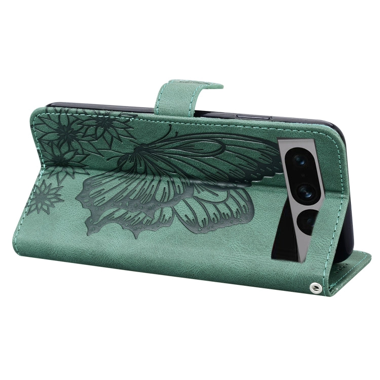 For Google Pixel 7 Pro 5G Retro Skin Feel Butterflies Embossing Horizontal Flip Leather Phone Case(Green)