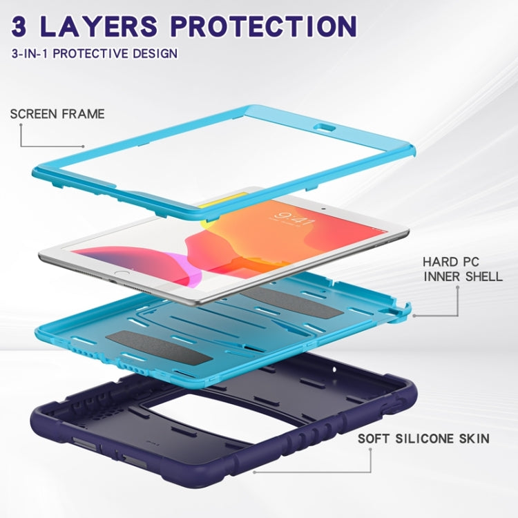 For iPad 10.2 2021 / 2020 / 2019 3-Layer Protection Screen Frame + PC + Silicone Shockproof Combination Case with Holder(NavyBlue+Blue)