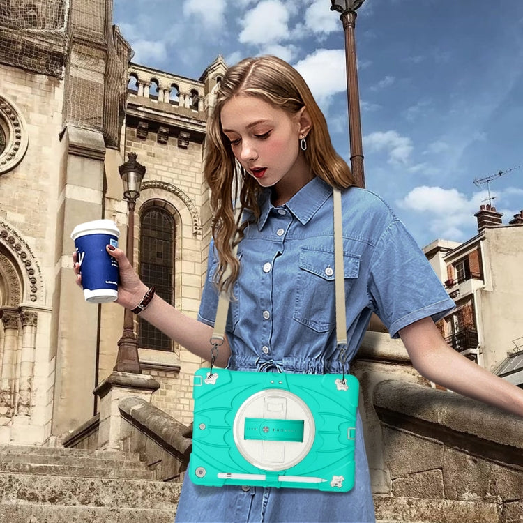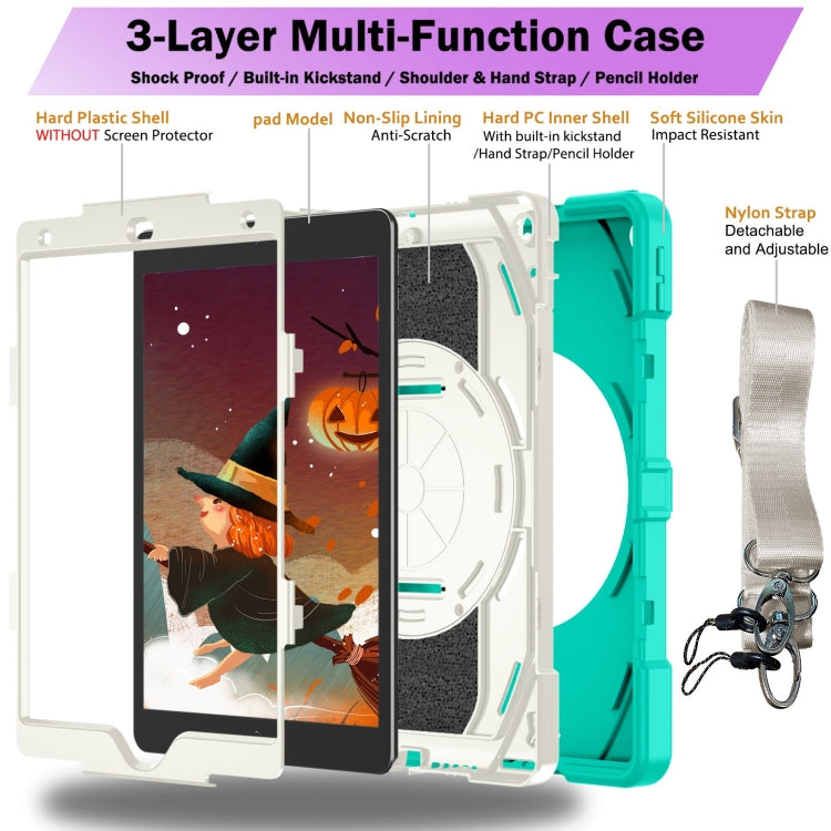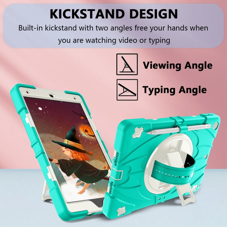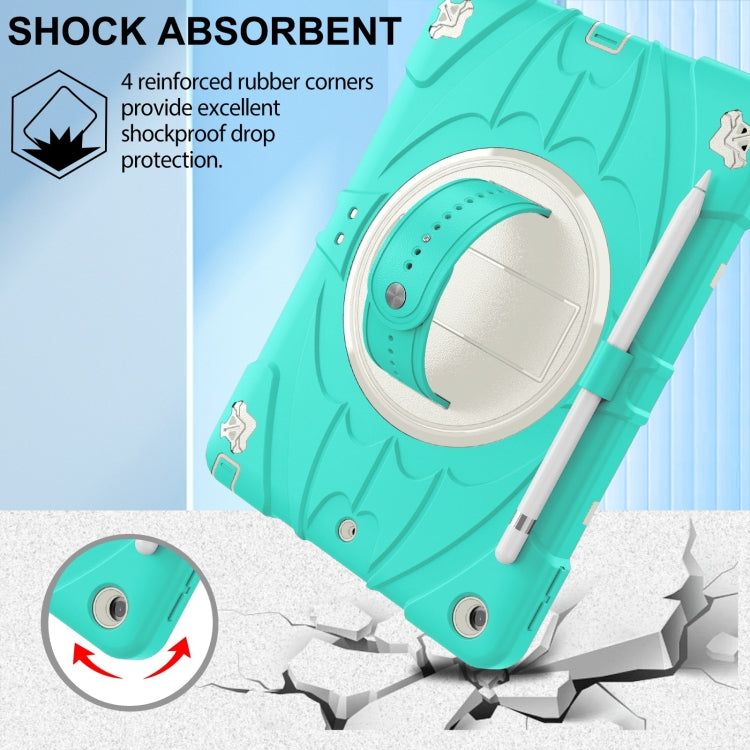 For iPad 10.2 2021 / 2020 / 2019 Bat Hand Grip Turntable Stand Tablet Case(Mint Green White)