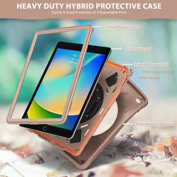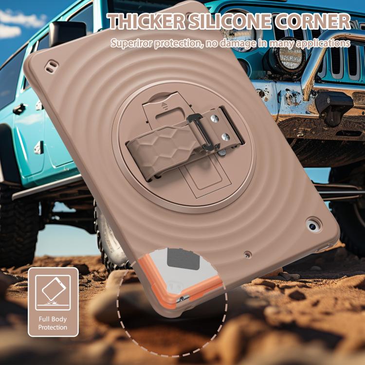 For iPad 10.2 2021 / 2020 / 2019 Rotation Holder Silicone Hybrid PC Tablet Case(Light Coffee)