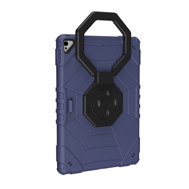 For iPad 10.2 2021 / 2020 / 2019 Spider Turntable Handle Stress Relief Tablet Case(Navy Blue Black)