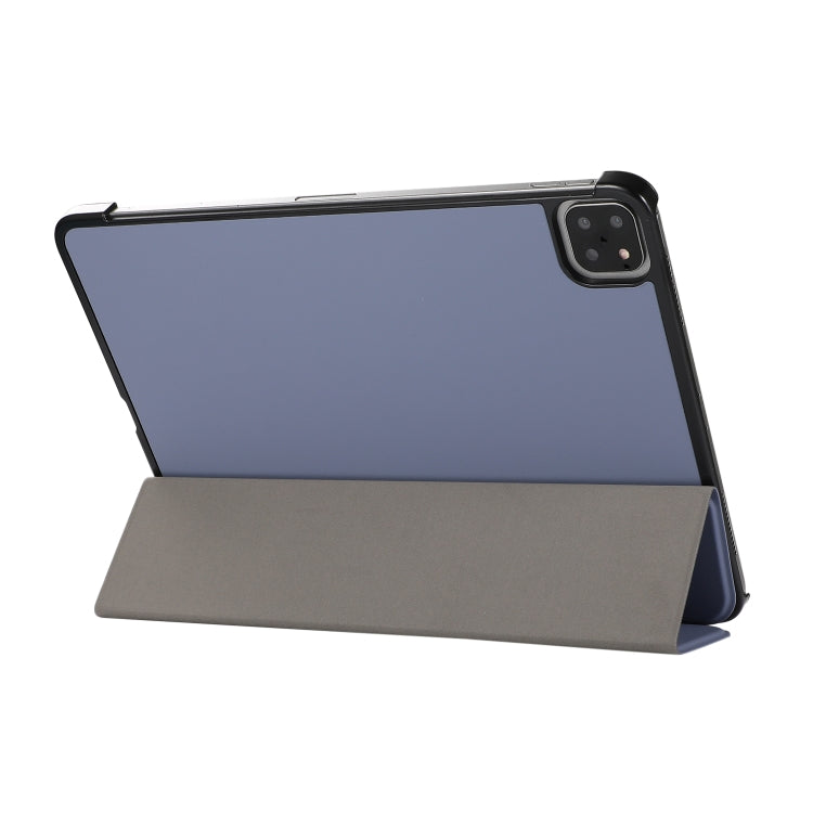 For iPad Pro 11 2022 / 2021 3-folding Skin Texture Horizontal Flip TPU + PU Leather Tablet Case with Holder(Lavender Grey)