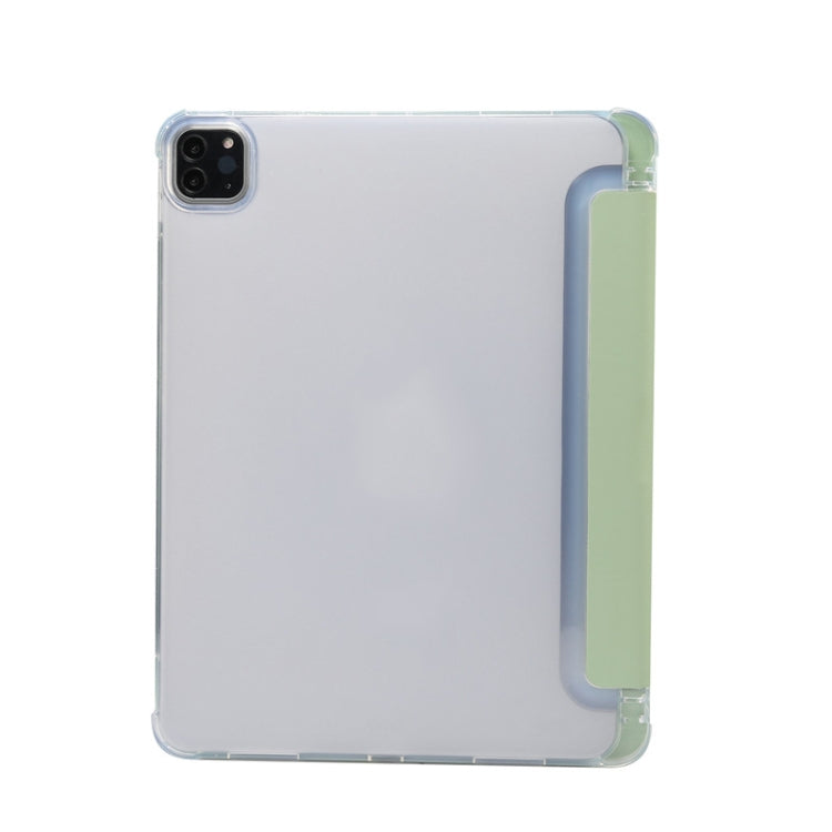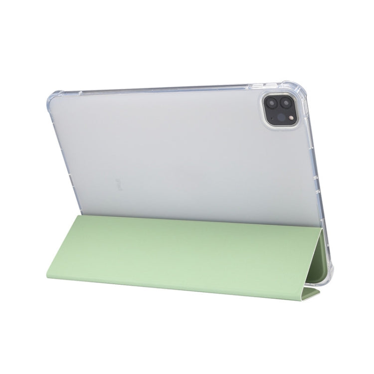 For iPad Pro 11 2022 / 2021 Three-folding Electric Pressed Skin Texture Horizontal Flip Shockproof Transparent TPU + PU Leather Tablet Case with Holder & Pen Slot & Sleep / Wake-up Function(Matcha Green)