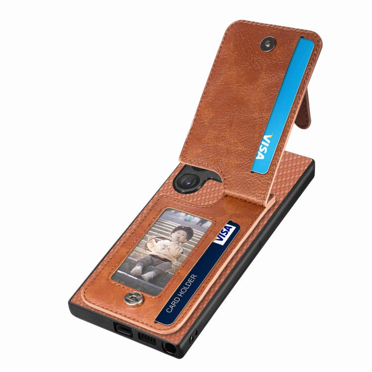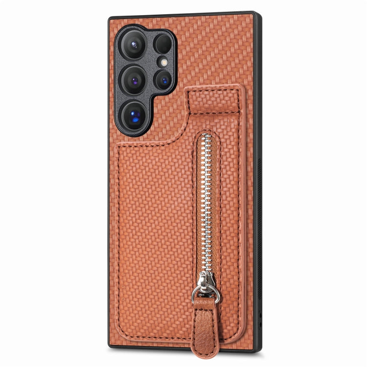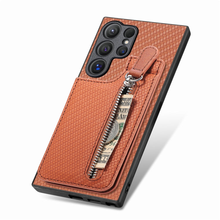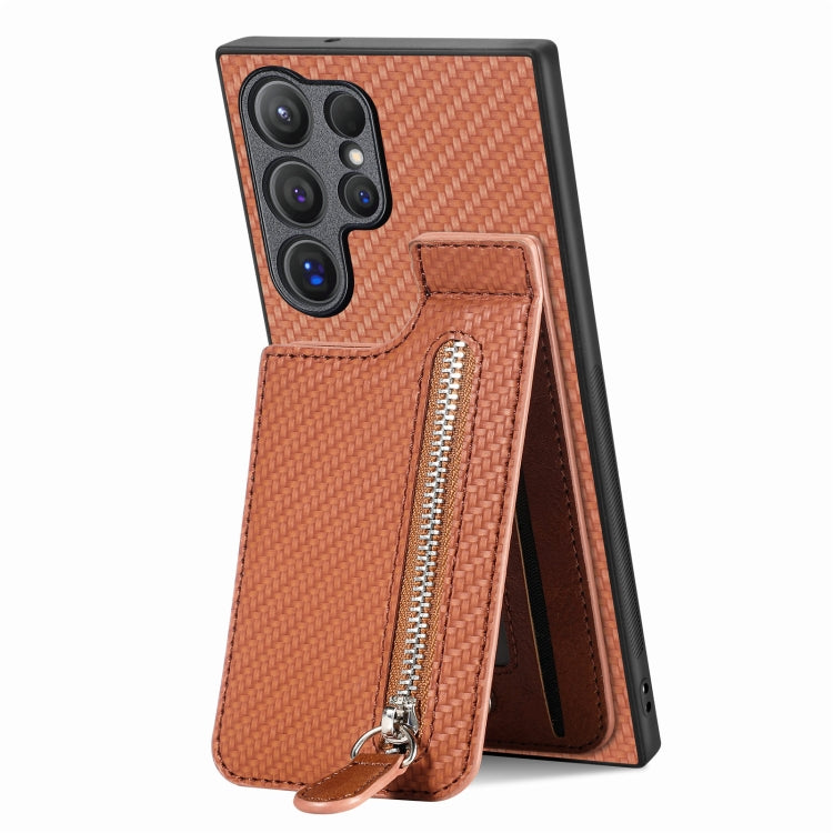 For Samsung Galaxy S24 Ultra 5G Carbon Fiber Vertical Flip Zipper Phone Case(Brown)