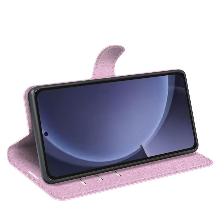 For Samsung Galaxy S25+ 5G Litchi Texture Horizontal Flip Leather Phone Case with Holder(Pink)