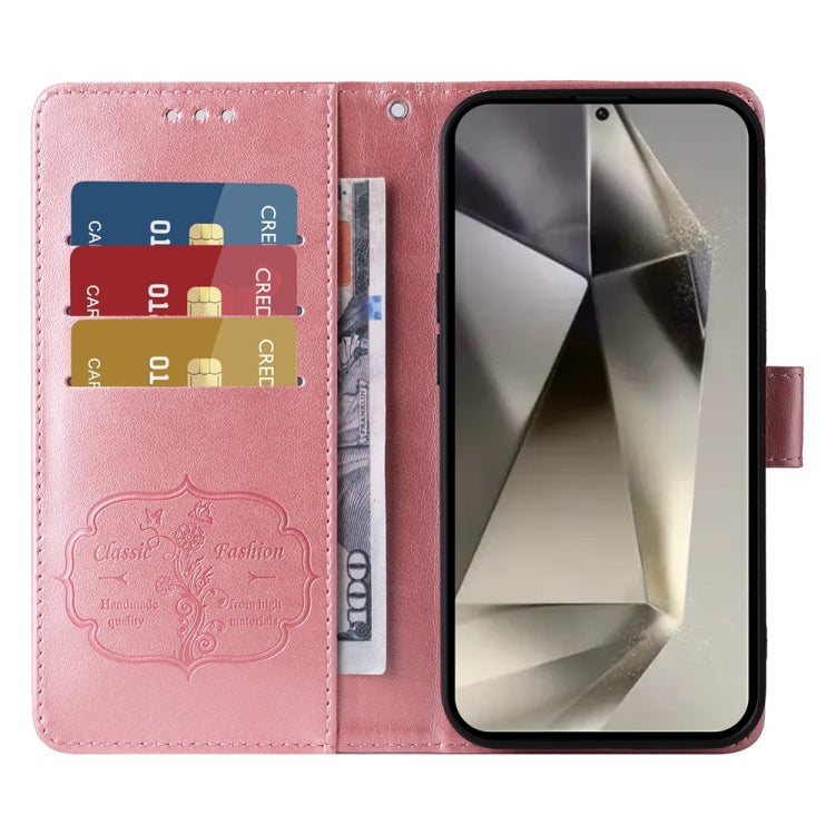 For Samsung Galaxy S25 Ultra 5G Embossed Butterfly Flowers Leather Phone Case(Rose Gold)