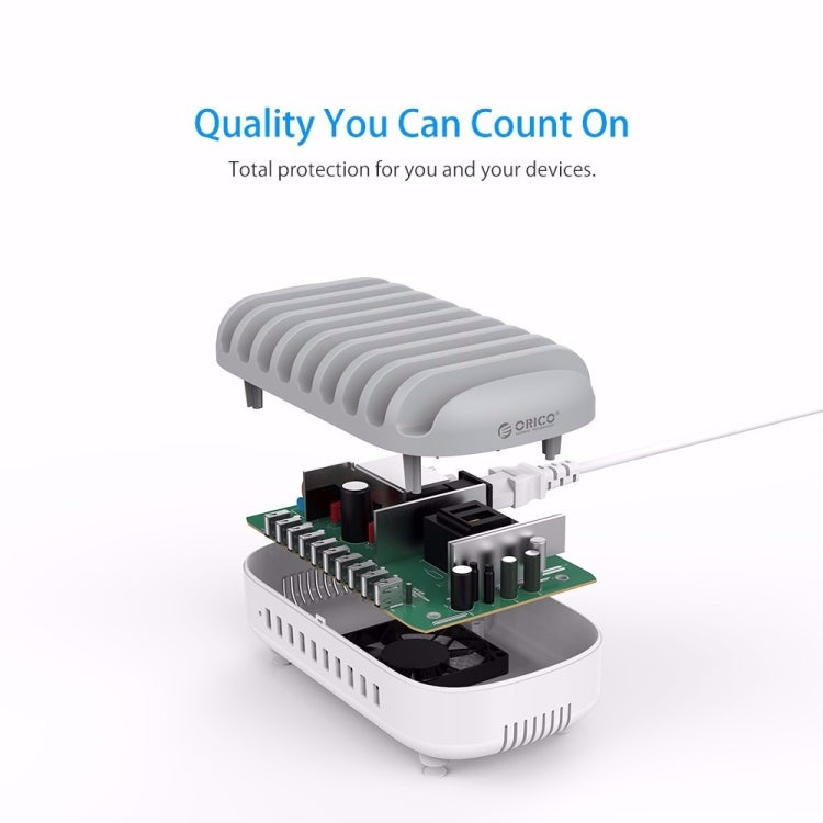 ORICO DUK-10P 120W 10 USB Ports Smart Charging Station with Phone & Tablet Stand, US Plug(Black)