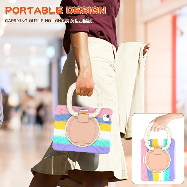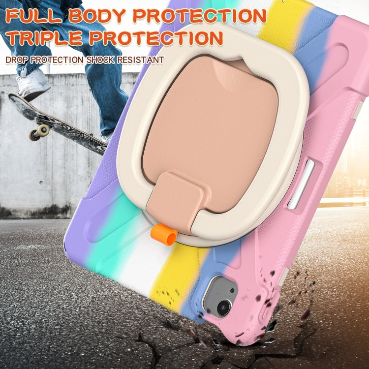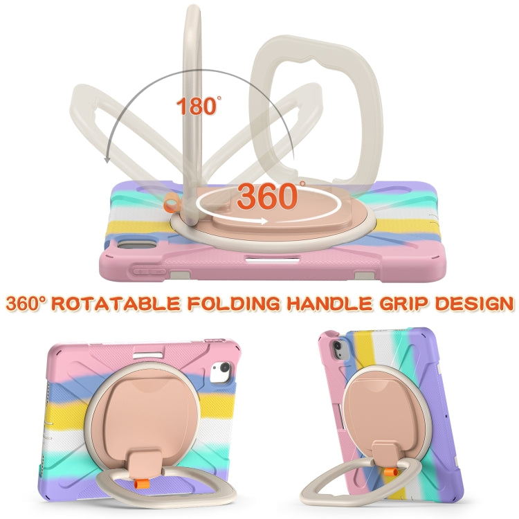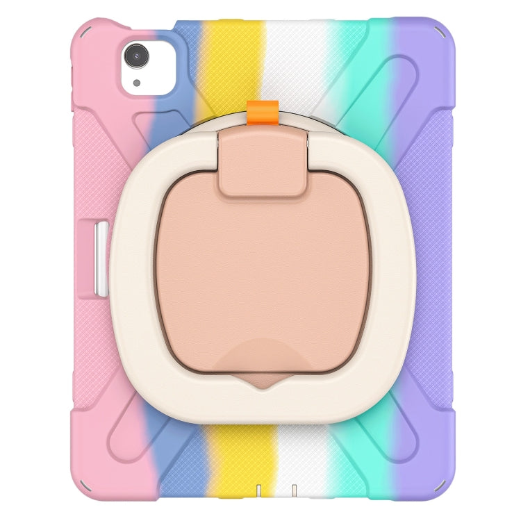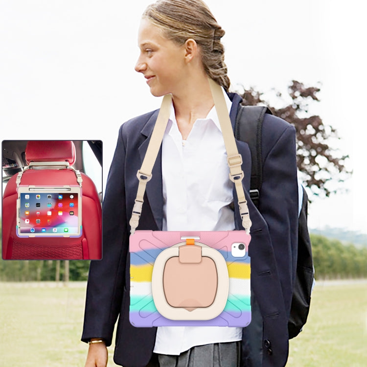 Silicone + PC Protective Case with Holder & Shoulder Strap For iPad Air 2022 / 2020 10.9(Colorful Pink)