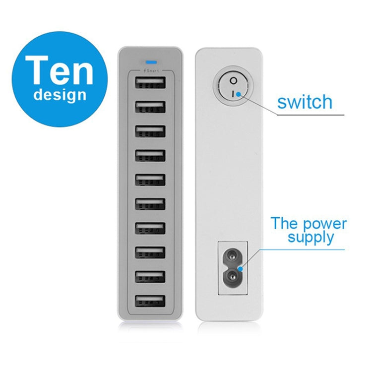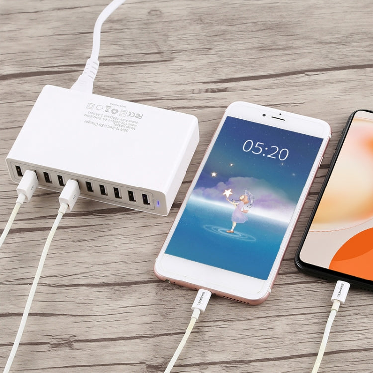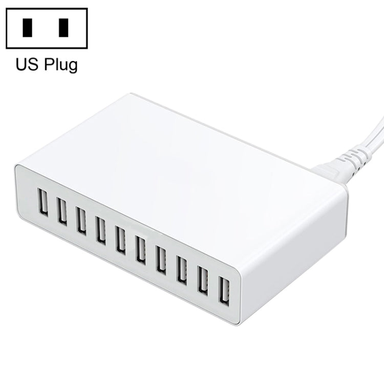 XBX09L 50W 5V 2.4A 10 USB Ports Quick Charger Travel Charger, US Plug(White)