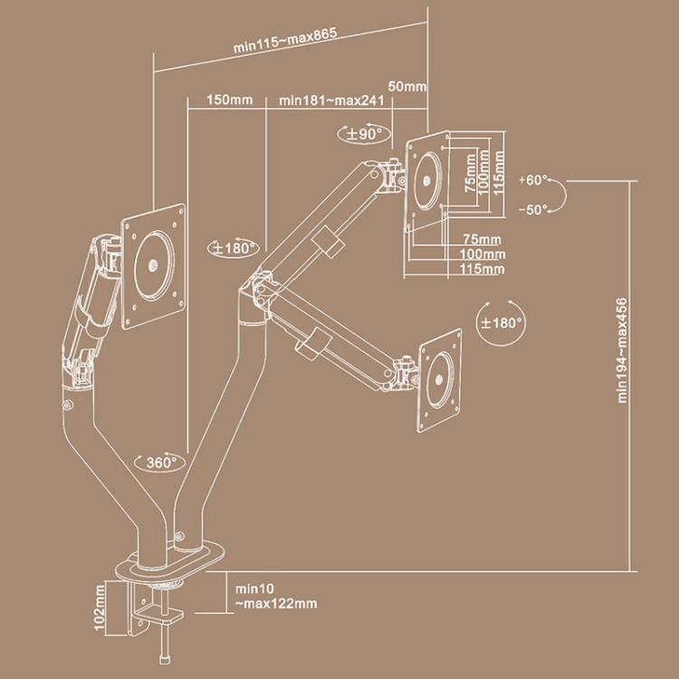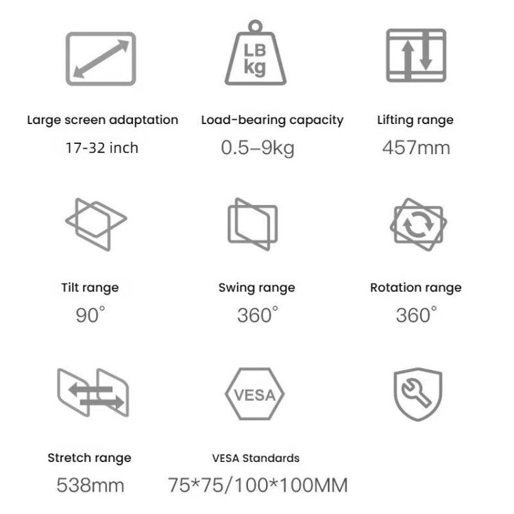 17-32 Inch Dual Monitor Mount Gas Spring 360 Degree Heavy Duty Floating Desk Arm(Black)