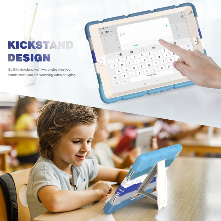 3-Layer Protection Screen Frame + PC + Silicone Shockproof Combination Case with Holder For iPad 9.7 (2018) / (2017) / Air 2 / Pro 9.7(Colorful Blue)