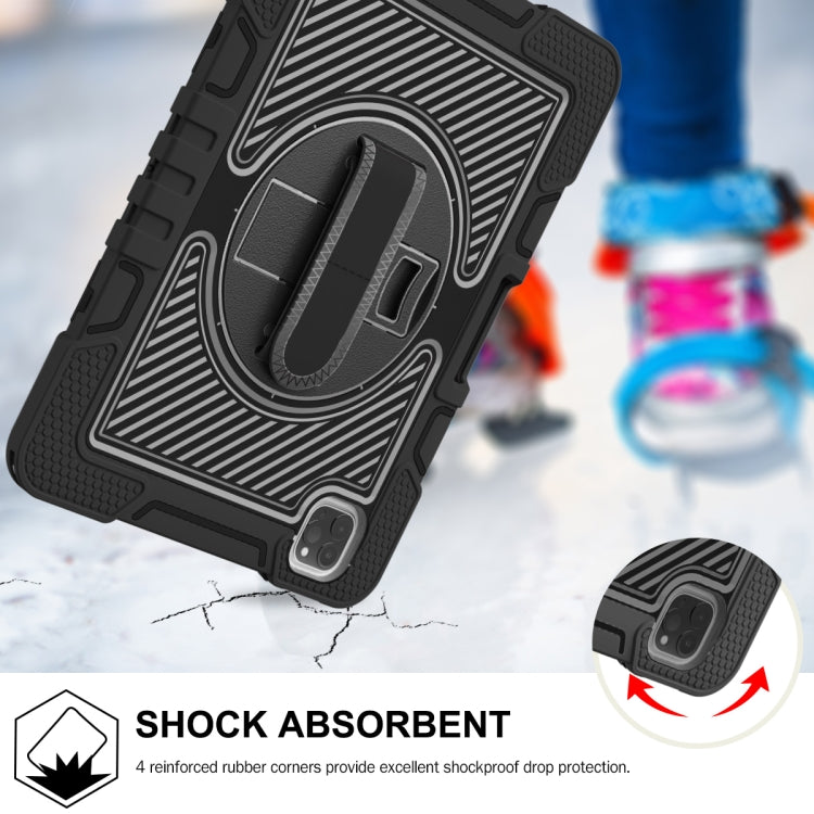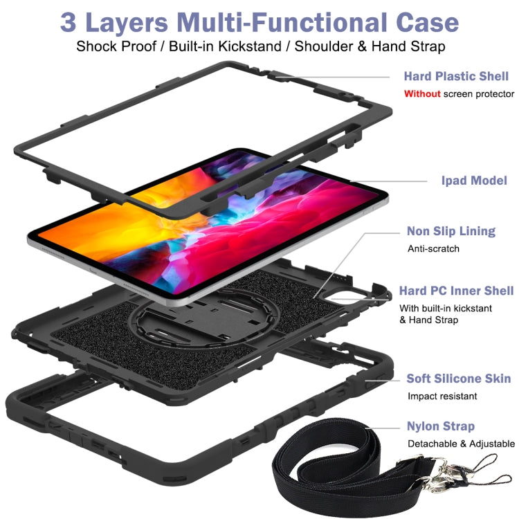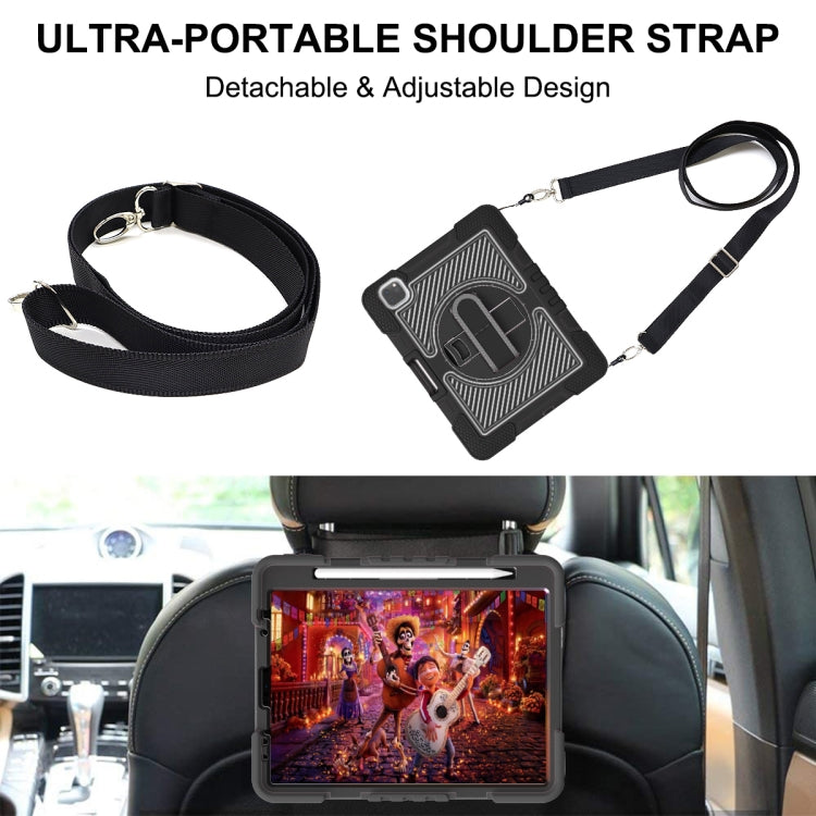 360 Degree Rotation Contrast Color Shockproof Silicone + PC Tablet Case with Holder & Hand Grip Strap & Shoulder Strap For iPad Air 2020 10.9 / Pro 11 2020 / 2021 / 2018 (Black)