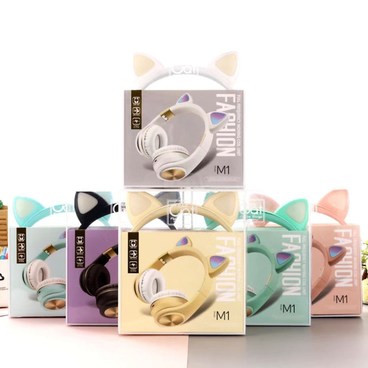 Cat Ears Bluetooth Wireless Headphones Gaming Headset with Light(Gold)