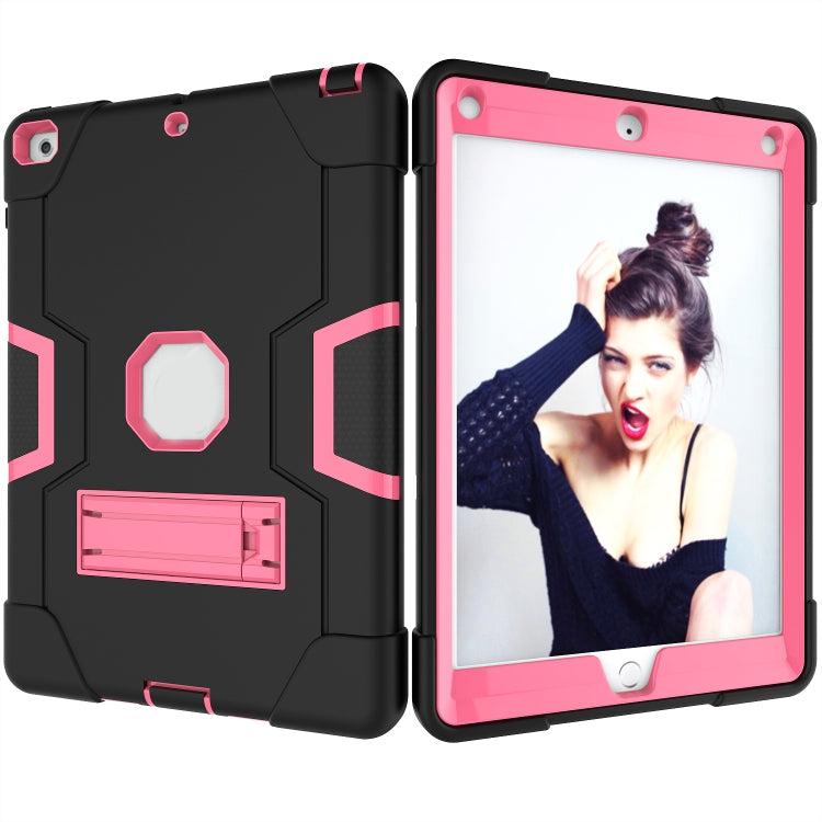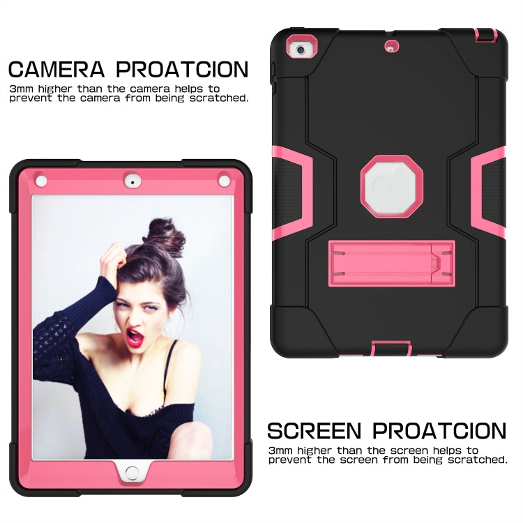 Contrast Color Robot Shockproof Silicone + PC Protective Case with Holder For iPad 9.7 (2017) / (2018)(Black + Rose Red)