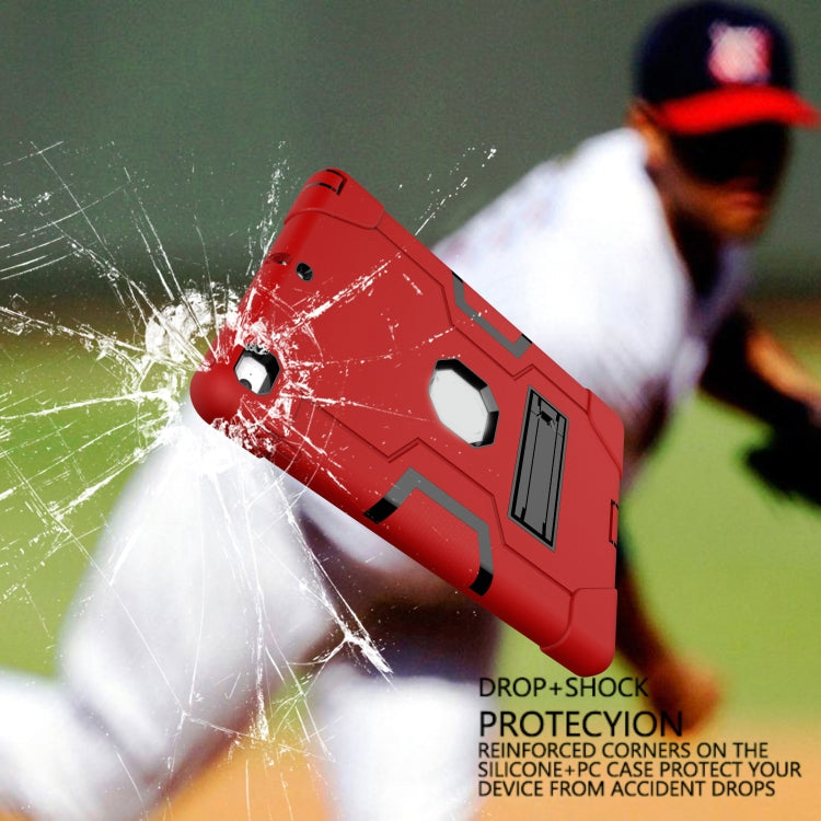 Contrast Color Robot Shockproof Silicone + PC Protective Case with Holder For iPad 9.7 (2017) / (2018)(Red + Black)