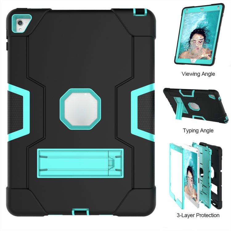 Contrast Color Robot Silicone + PC Tablet Case For iPad 6 / iPad Pro 9.7 2016(Black + Mint Green)
