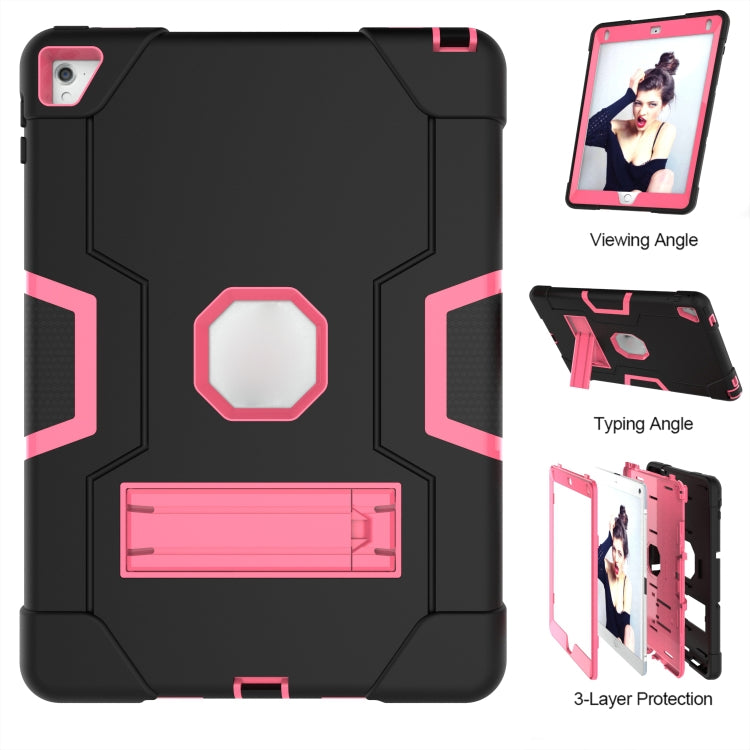 Contrast Color Robot Silicone + PC Tablet Case For iPad 6 / iPad Pro 9.7 2016(Black + Rose Red)