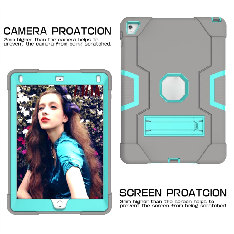 Contrast Color Robot Silicone + PC Tablet Case For iPad 6 / iPad Pro 9.7 2016(Grey + Mint Green)