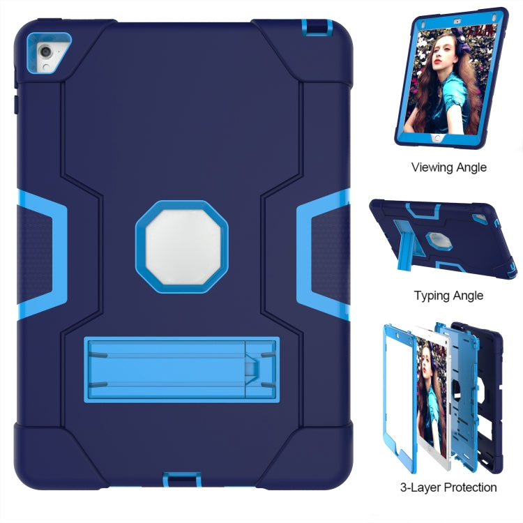 Contrast Color Robot Silicone + PC Tablet Case For iPad 6 / iPad Pro 9.7 2016(Navy Blue + Blue)
