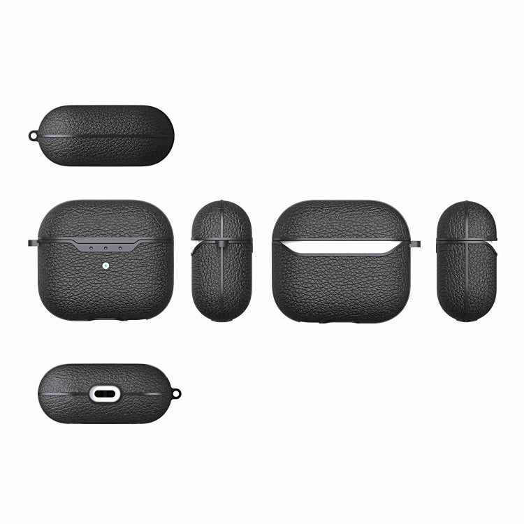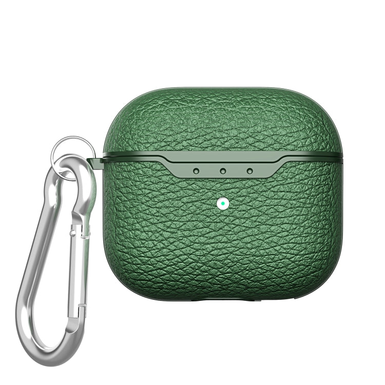 For AirPods 4 Litchi Texture TPU Shockproof Earphones Case with Hook(Green)